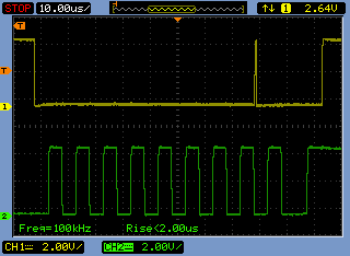 To find it, grab an oscilloscope and probe both the SDA and SCL lines. First, set the oscilloscope in free-running mode and check the voltage: